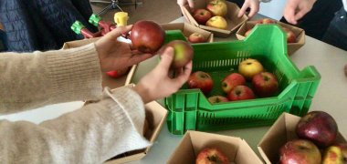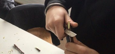 Beim zweiten Termin wurde es dann handwerklich: Die Klasse lernte, wie Apfelpflanzen veredelt werden. Dabei werden zwei Pflanzenteile miteinander verbunden – die Unterlage (Wurzel und Stammfuß) und das Edelreis (ein Zweig der gewünschten Sorte). Unter Anleitung setzten alle Schülerinnen und Schüler diese Technik selbst mit Messer und den entsprechenden Pflanzenteilen um. Besonders schön war, dass alle ihre eigene veredelte Apfelpflanze mit nach Hause nehmen durften, um sie dort einzupflanzen. In drei bis vier Jahren könnten bereits die ersten Äpfel geerntet werden.