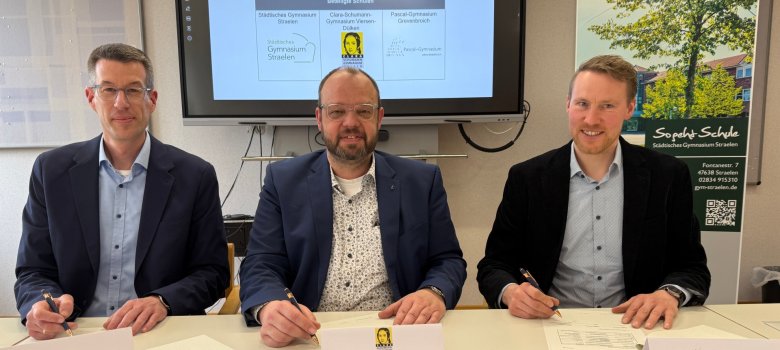 Drei Gymnasien aus der Region intensivieren ihre Zusammenarbeit in der Schul- und Unterrichtsentwicklung: Mit einer neuen Kooperationsvereinbarung vernetzen sie ihre Arbeit im Rahmen des Netzwerks „Zukunftsschulen NRW – Lernkultur Individuelle Förderung“. Die Vereinbarung wurde am Städtischen Gymnasium Straelen unterzeichnet. Neben der gastgebenden Schule sind das Clara-Schumann-Gymnasium Viersen-Dülken sowie das Pascal-Gymnasium Grevenbroich beteiligt. Ziel ist es, den Unterricht weiterzuentwickeln und die Fähigkeit, zu lernen, stärker in den Fokus zu rücken.