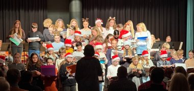 Im weiteren Verlauf traten Chor und IPK gemeinsam auf und überzeugten mit zeitgenössischen Arrangements von „Let It Go“, „Hold My Hands“, „Hannukah“ und „Das junge Weihnachtskonzert“. Ein kurzer Saxophon-Beitrag rundete diesen Konzertteil ab.